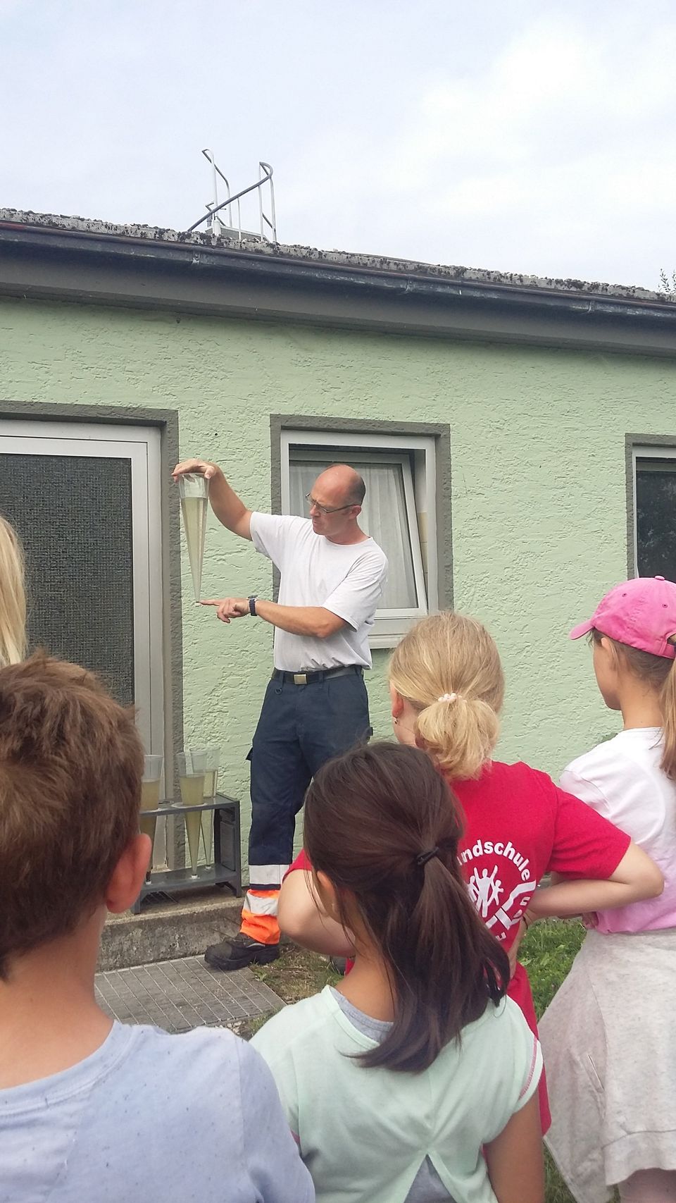 Weiter gings mit dem Bus durch den Wald bis zur Kläranlage Rommelsried. Dort erklärte uns Herr Fendt, wie das Wasser in mehreren Stufen gereinigt wird, bis es so sauber ist, dass es wieder in den natürlichen Wasserkreislauf zurückgeleitet werden kann.